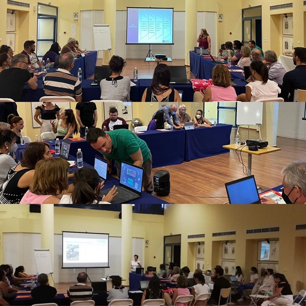 In the course of the event, La Salle del Buen Consejo presented the learning activities they implemented with their students to serve as an example on how to use the learning content developed as part of the first two outputs. Furthermore, Prof. Ioanna Vekiri from the European University of Cyprus presented general information about the project (its objectives and its expected results). Finally, Mrs. Rafaela Pappa, from Challedu, demonstrated the digital game to the participants, who were asked to interact with the game, in teams, thinking of how to optimally utilize it and integrate within their students’ learning process.