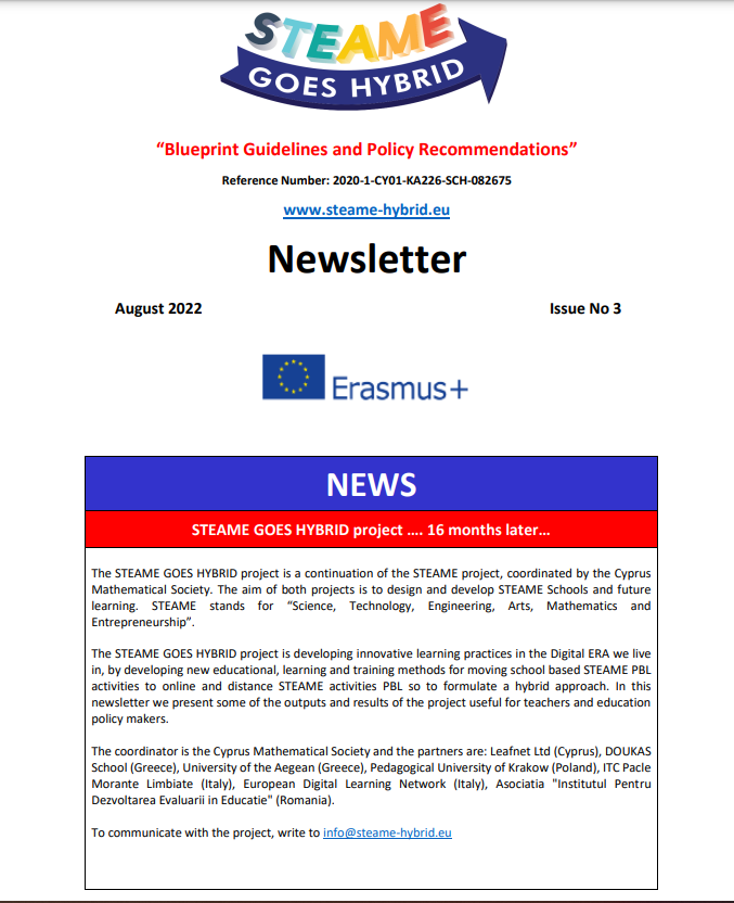 You can read the 3rd Newsletter of the STEAME GOES HYBRID project here!