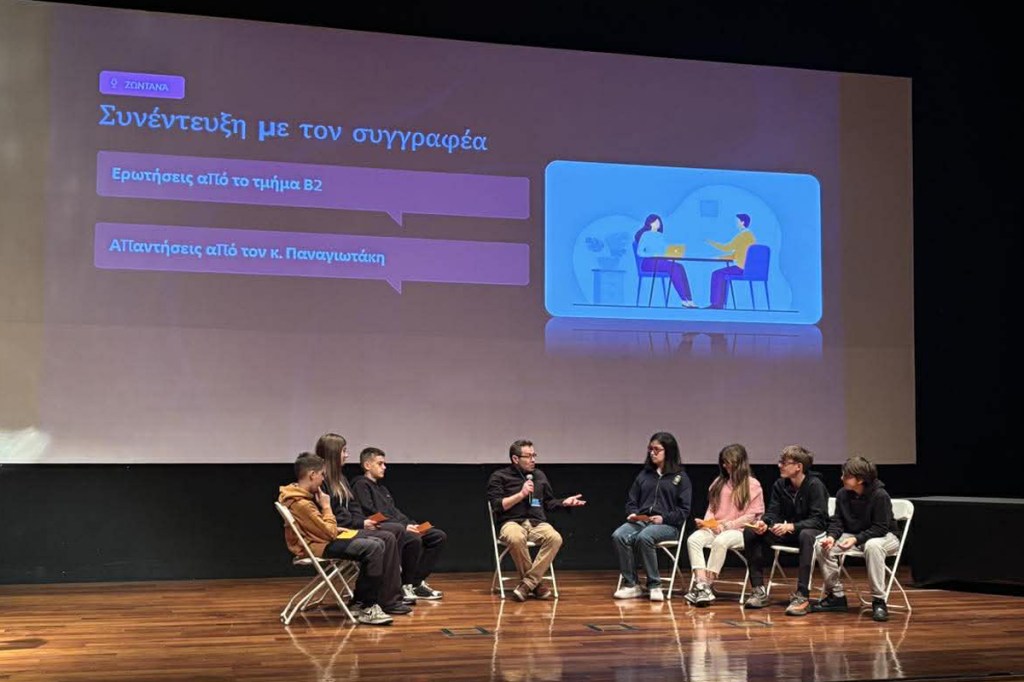 Η έναρξη της φετινής δράσης πραγματοποιήθηκε την Πέμπτη 22 Ιανουαρίου με την παρουσίαση του βιβλίου “Τίγκρε, με τα χέρια γυμνά”. Ο συγγραφέας του βιβλίου, κ. Γ. Παναγιωτάκης, τίμησε την εκδήλωση με την παρουσία του, συνομίλησε με τα παιδιά και μοιράστηκε μαζί τους πτυχές της συγγραφικής διαδικασίας και της δημιουργικής πορείας ενός βιβλίου.