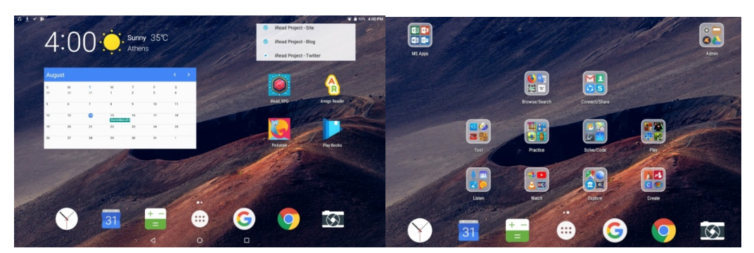 H δεύτερη οθόνη περιέχει 100+ ελεύθερες εφαρμογές(που βρίσκονται στο Google Play Store) κατάλληλες για εκπαιδευτικούς σκοπούς, οι οποίες είναι οργανωμένες σε 10+2 φακέλους. Οι εφαρμογές αυτές που έχουν επιλεχθεί και έχουν αξιολογηθεί, δημιουργήθηκαν για παιδιά ηλικίας 6+ ετών σε όλο τον κόσμο.