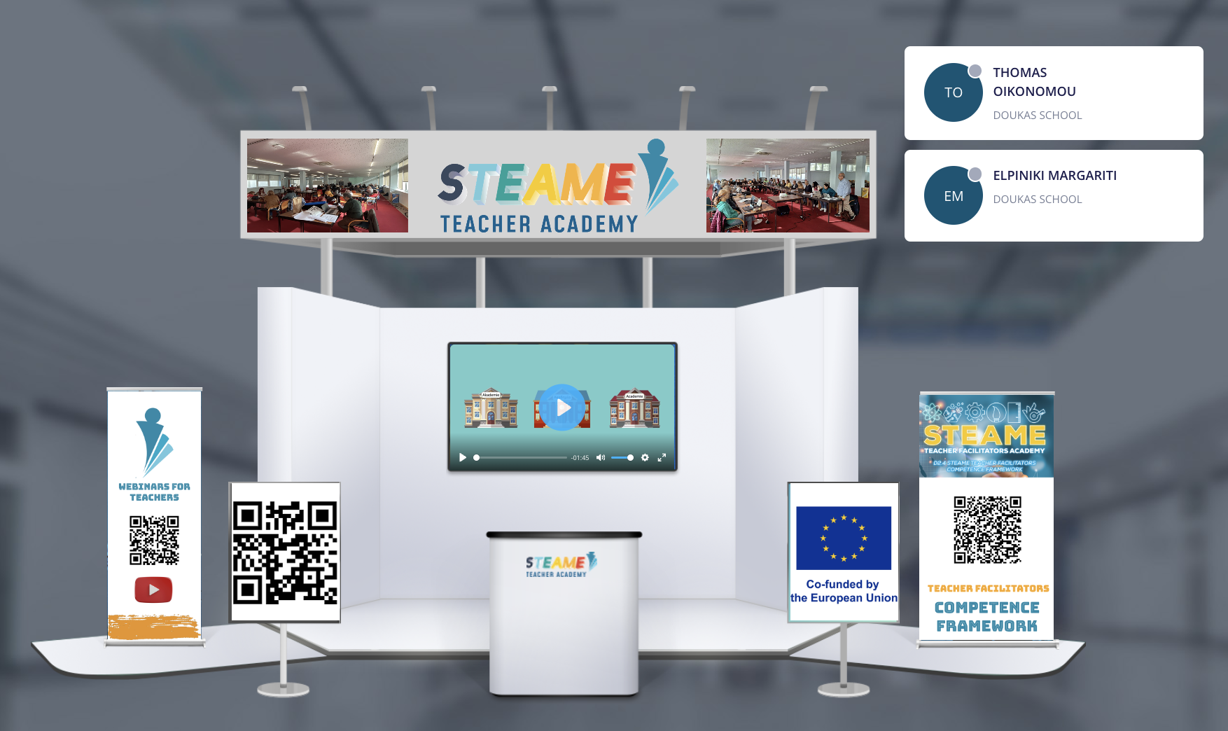 Μέσα από το τρισδιάστατο εικονικό booth παρουσιάστηκαν οι δραστηριότητες και τα παραδοτέα που έχουν δημιουργηθεί στο πλαίσιο του έργου με στόχο την ενδυνάμωση των εκπαιδευτικών στην εκπαίδευση STEAME (Επιστήμη, Τεχνολογία, Μηχανική, Τέχνες, Μαθηματικά και Επιχειρηματικότητα). Το διαδραστικό booth επέτρεψε στους συμμετέχοντες να εξερευνήσουν τους καινοτόμους πόρους, ενθαρρύνοντάς τους να έρθουν σε επαφή με τα αποτελέσματα του έργου.